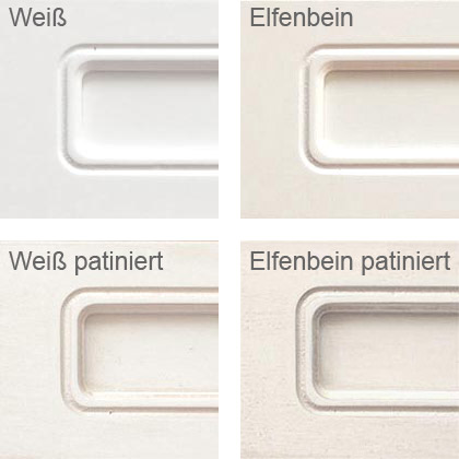 Standard-Version: eine matte Lackierung. Vergleichbar mit der Farbe Nr.9001 der RAL-Tabelle, ähnliche der Sahne. Die Farbe ist aber nicht empfehlenswert für Möbel mit Intarsie oder Wurzelholz. Der Beschlag in Gold, Verchromt oder mit Swarovski passt gut zu dieser Farbe.