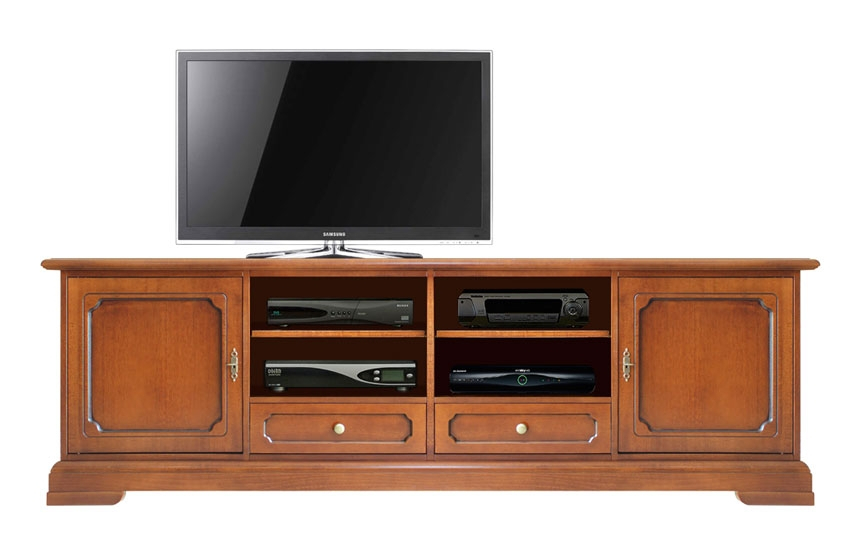 TV-Möbel mit Schubkästen mit Breite 2 m, gleichzeitig groß, praktisch aber elegant und fein.