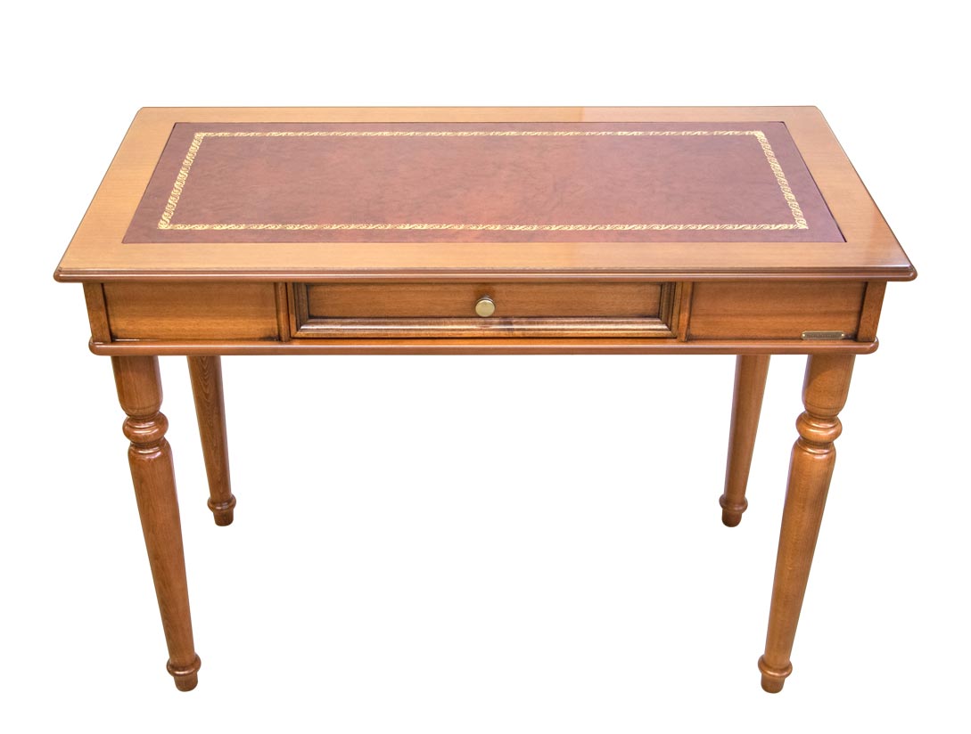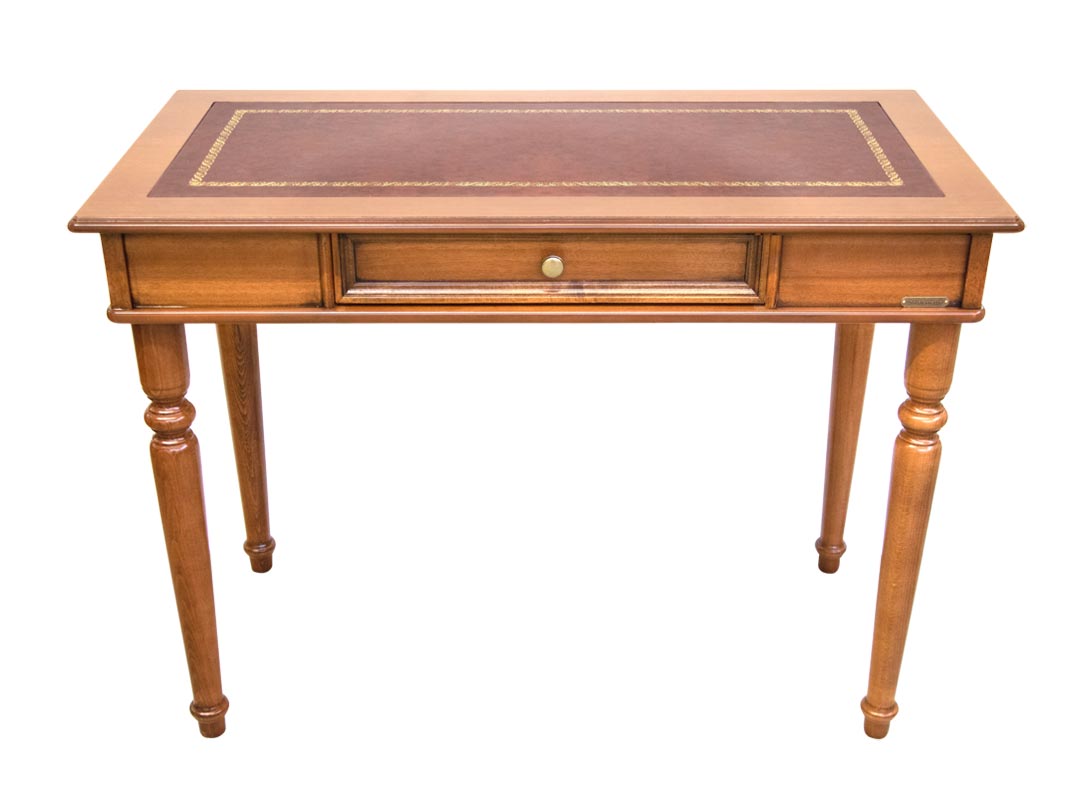 Schöner Schreibtisch mit Lederplatte und Schublade, elegant und einfach. Für die einfache Linie ist dieser Schreibtisch ideal für jeden Wohnungsraum, Büro oder Arbeitszimmer.