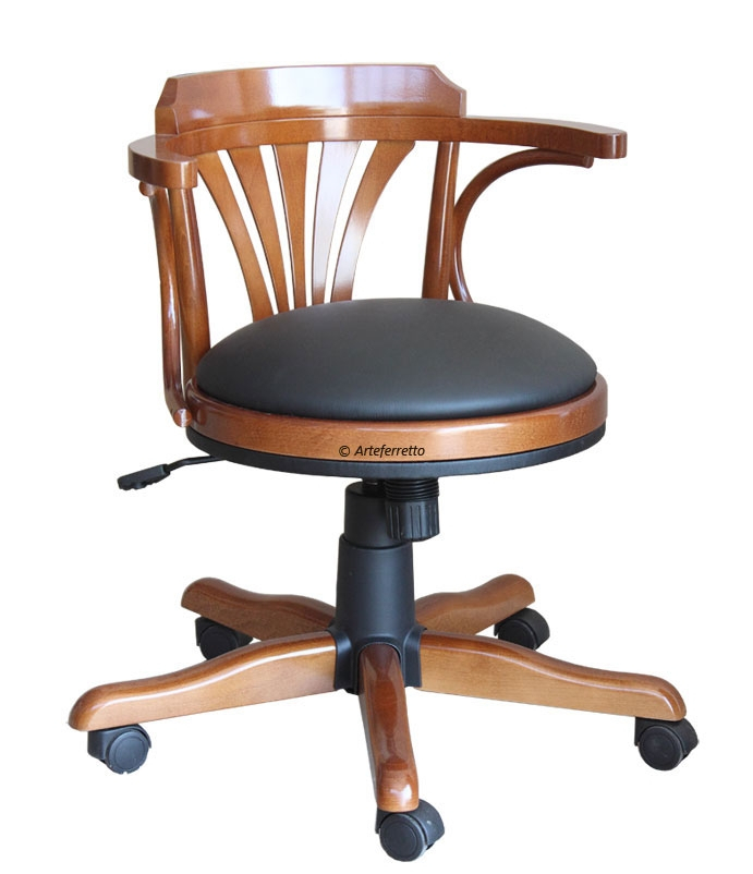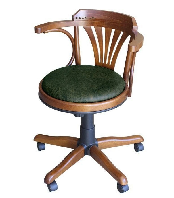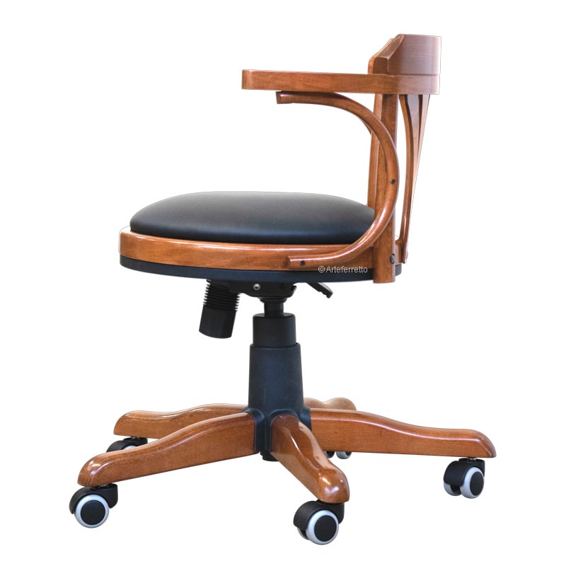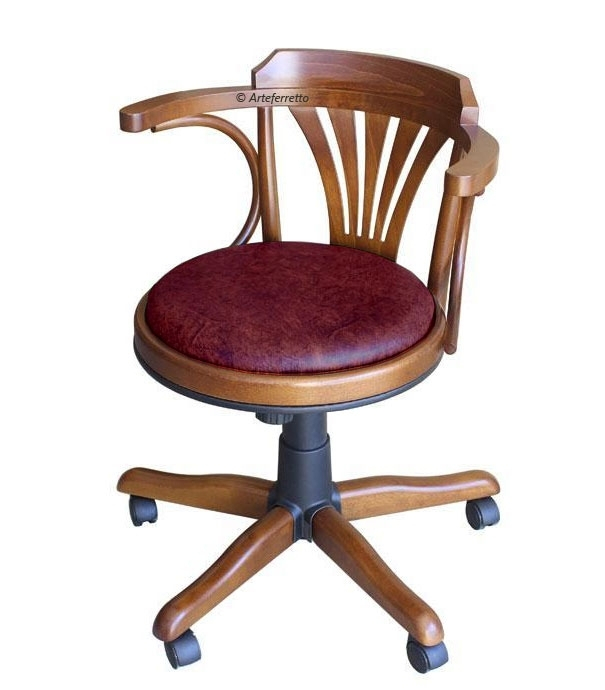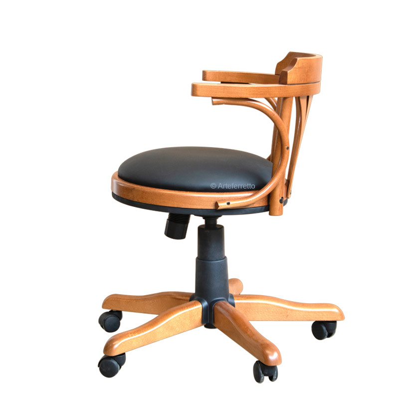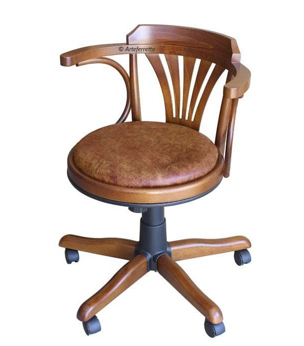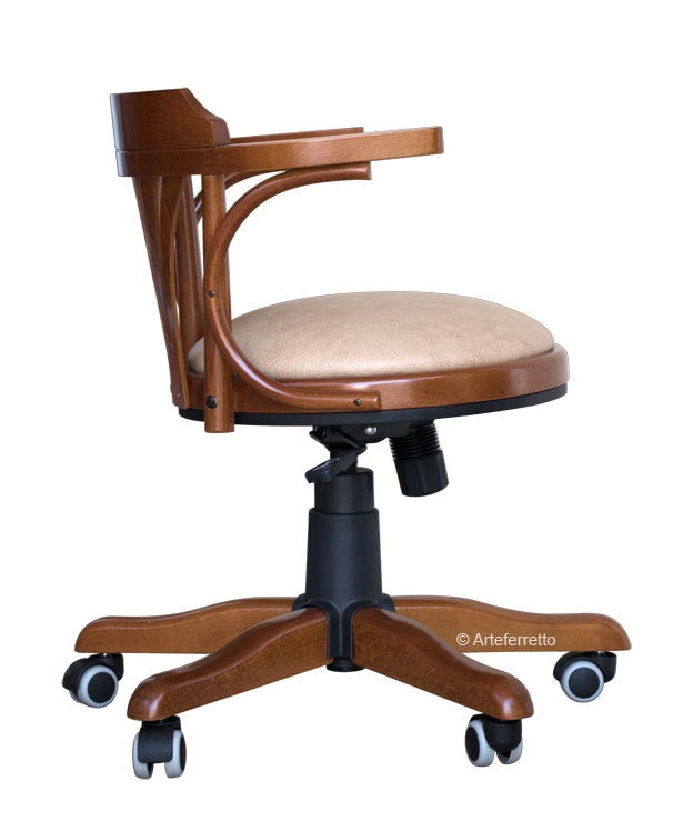 Eleganter Drehstuhl mit Rollen und Polstersitz , starke Struktur aus Buchenholz.