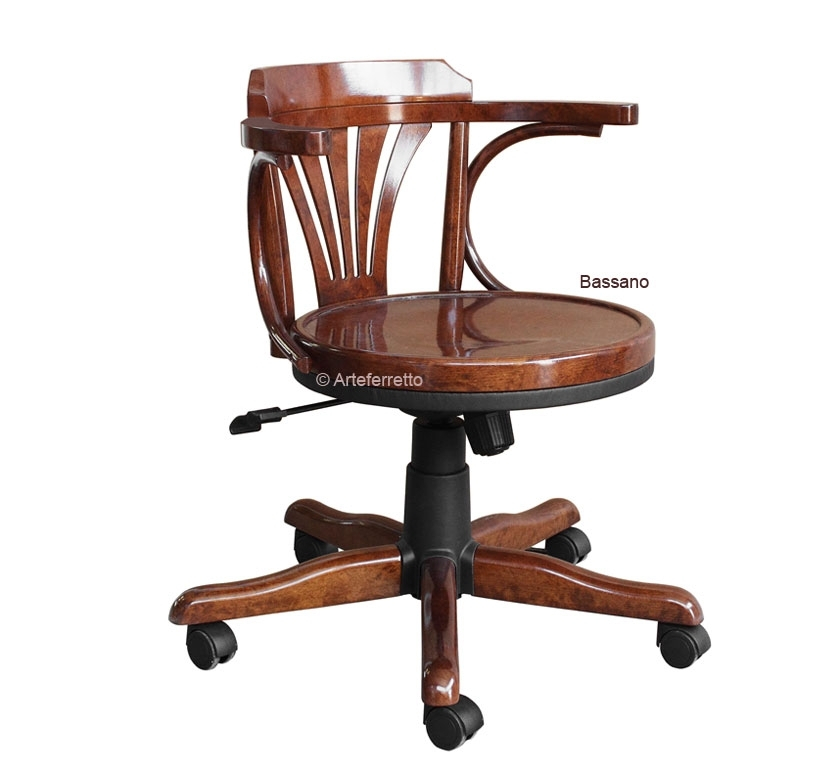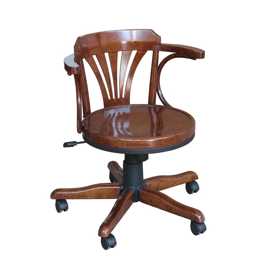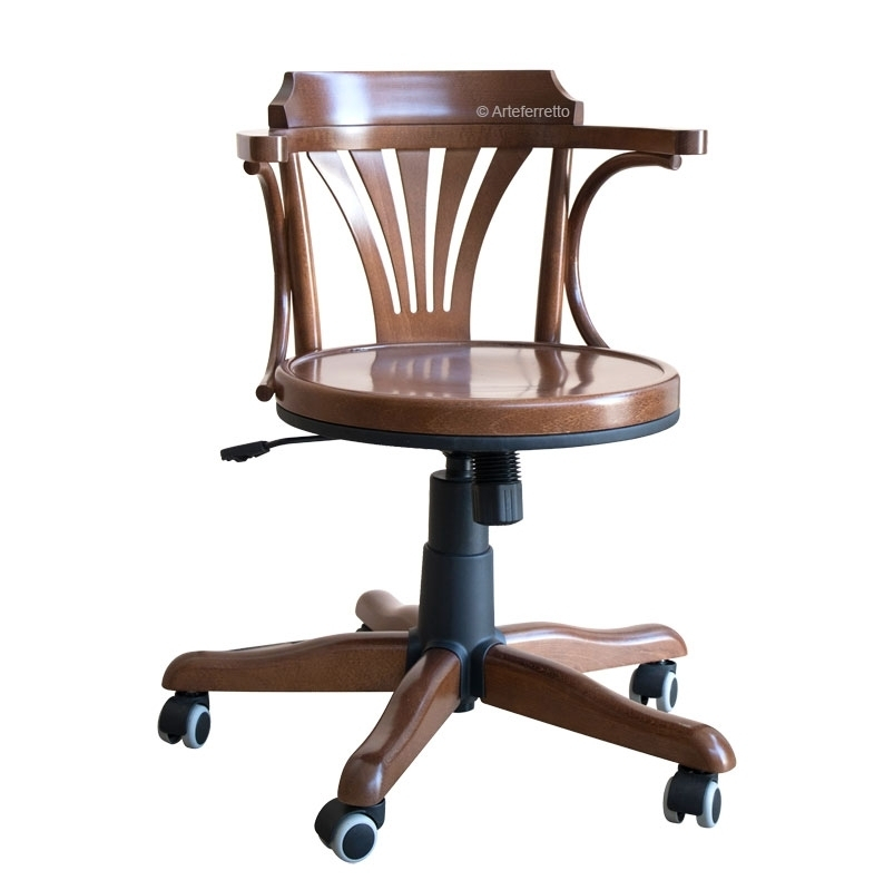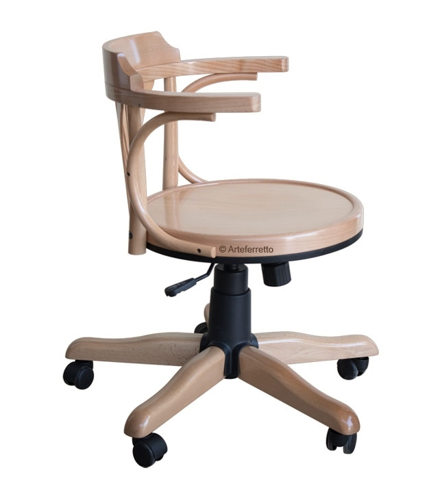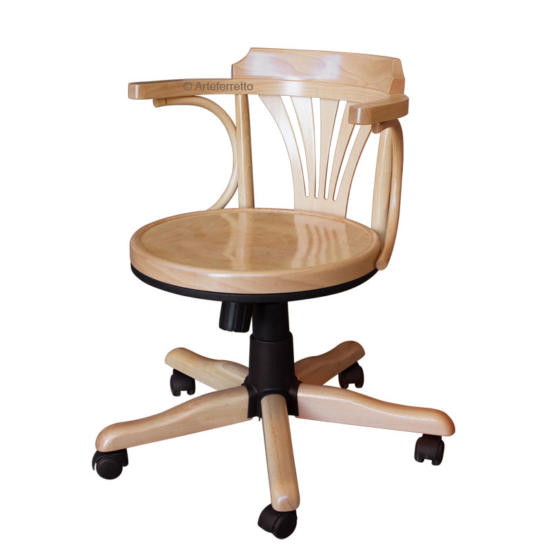 Eleganter Drehstuhl Holzsitz mit Rollen, starke Struktur aus Buchenholz. Der Sitz ist aus Holz.