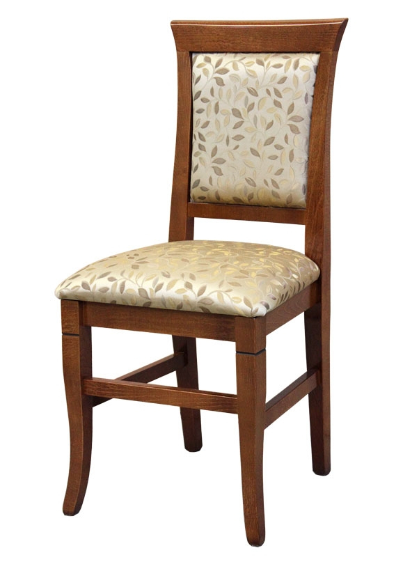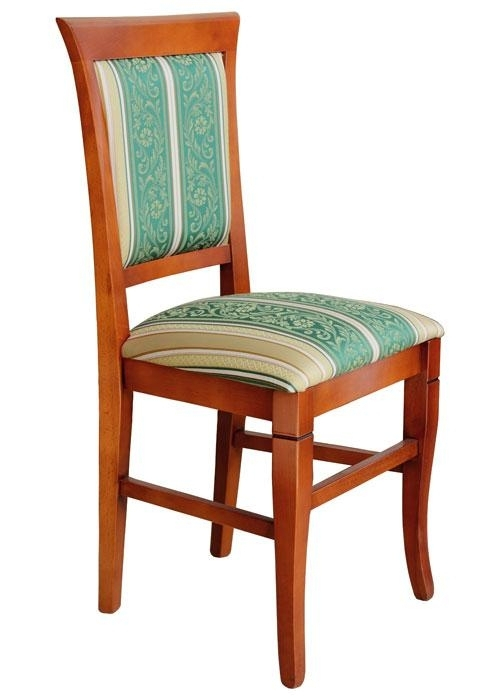 Der Stuhl hat gleichzeitig ein starkes und elegantes Gestell. Die Rückenlehne, die Armlehnen und der Sitz sind aus Stoff verkleidet. Die Besonderheiten dieses Stuhls sind die elegante und klassische Linie mit der Schnitzarbeit und den Bezug, die die hohe Qualität und den Preis zusammengestellt.