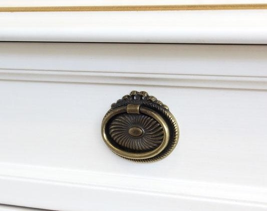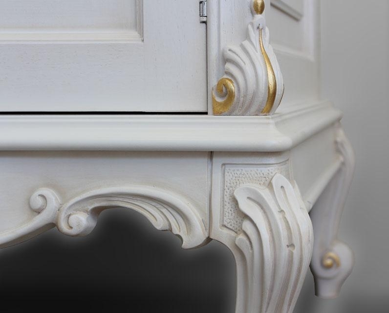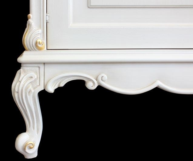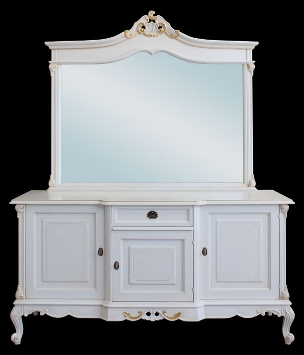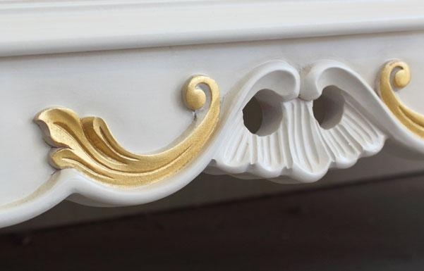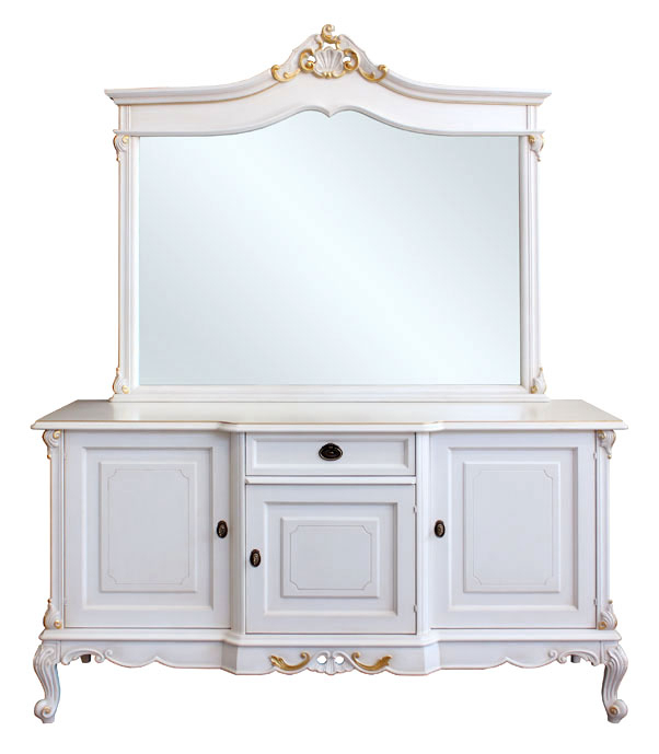 Die Anrichte (Art.MT-62) ist in Weiß lackiert, mit eine Dekorierung in Blattgold. Perfekt mit dieser Anricht ist der Spiegel mit eleganten und klassischen Form.