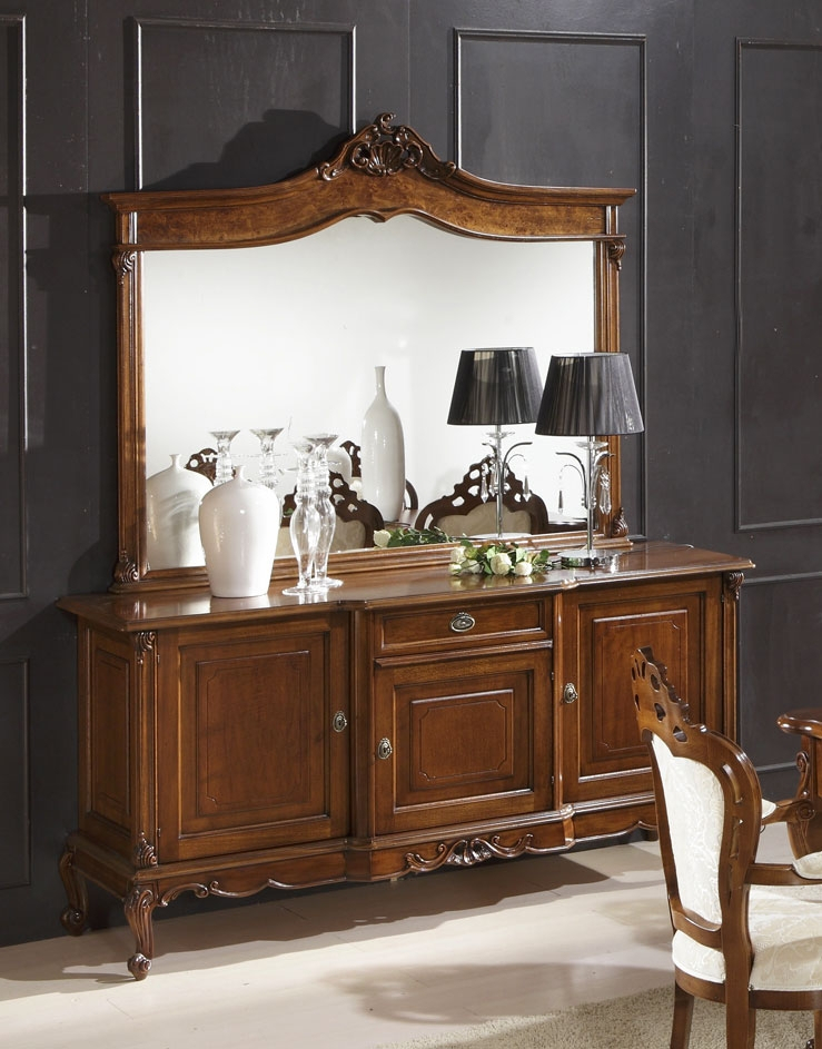 Diese Anrichte ist gleichzeitig schön, elegant und geräumig. Die Besonderheit ist die Linie mit einer schöner Schnitzarbeit.