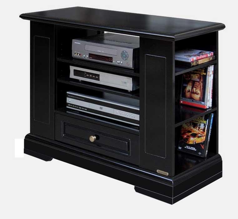 Zwischen der Schranktüren hat es 2 Fächer für die Fernseher-Ausrüstung, z.B. CD Leser, Decoder, Home Theater, etc.