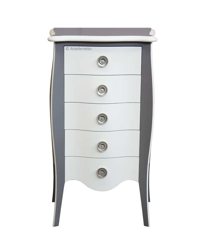 Das ist eine Kommode schmal aber praktisch und geräumig, weil ihre 7 Schubladen breit sind.