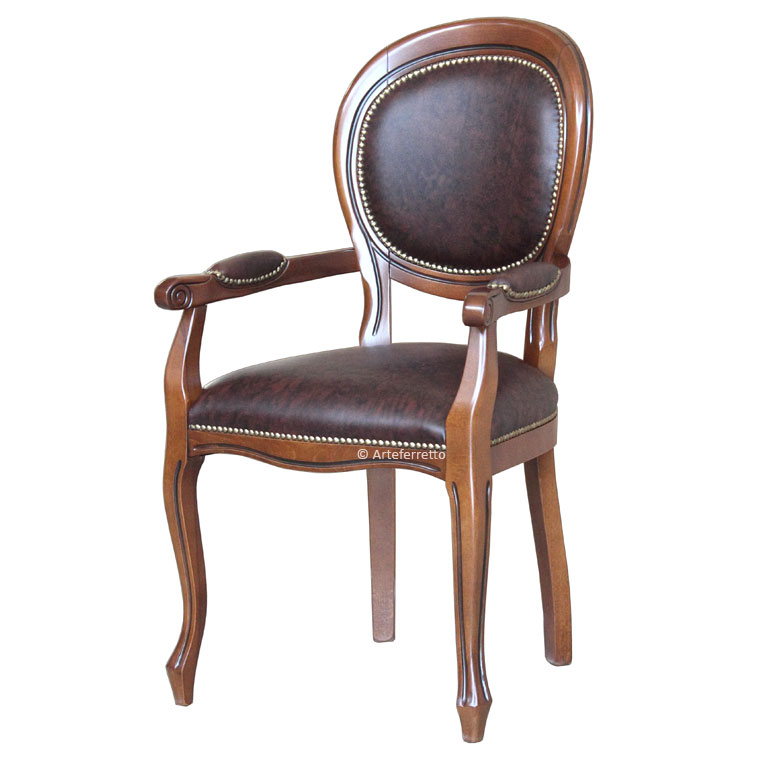 Hochwertiger Stuhl mit Lederstuhl mit Armlehnen Louis Philippe.