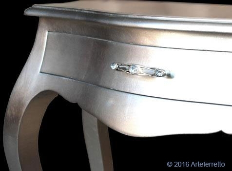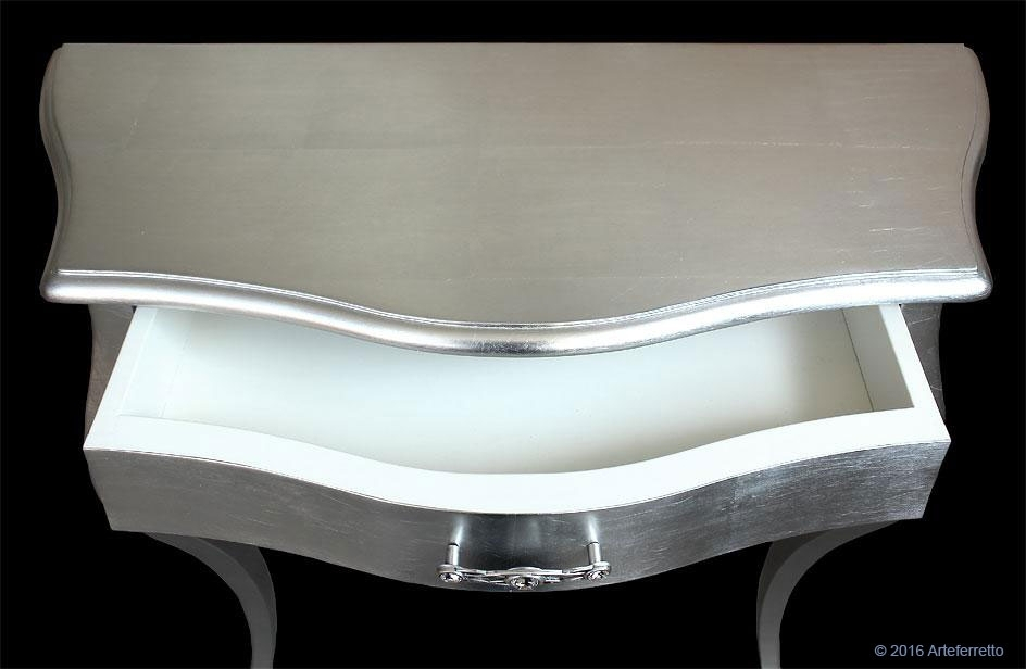 Bei der Lieferung ist der Konsolentisch Blattsilber schon montiert.