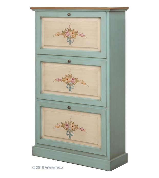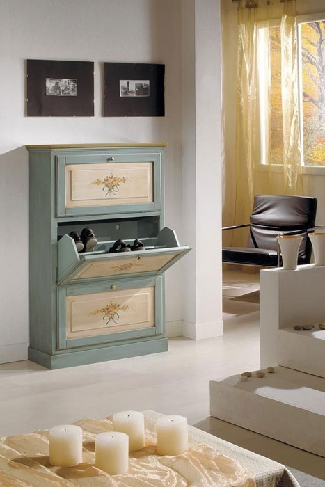 Dieses Möbelstück kann in verschiedenen Räumen der Wohnung aufgestellt werden und bietet den Komfort eines originellen Aufbewahrungsortes für die Schuhe der ganzen Familie.
