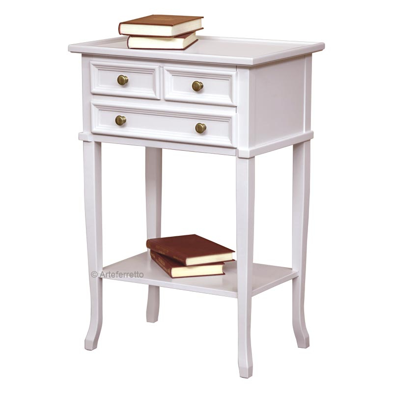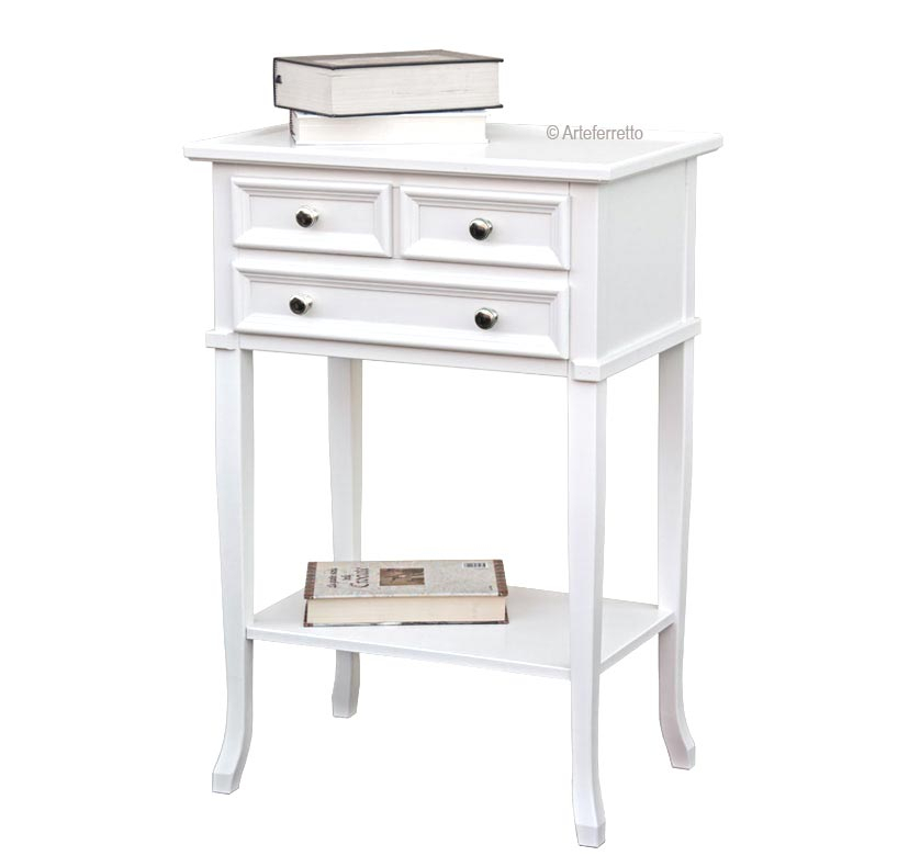Weißes Möbel Telefon 3 Schublade sehr elegant und schön. Es ist ideal für jeden Wohnungsraum durch die Mitteldimensionen und die Zweckmäßigkeit.