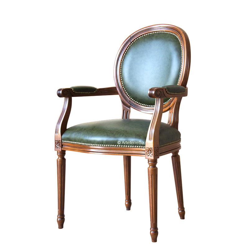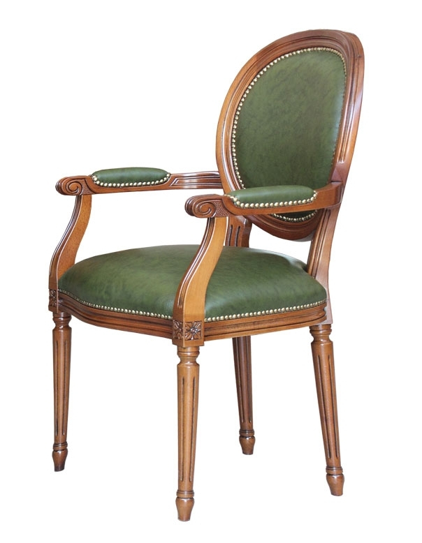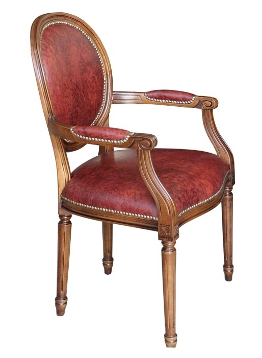 Die Struktur ist aus Buchenholz uns also ist sehr stark. Der Armlehnstuhl mit Leder hat das bulgarische Leder in den Lehnen, im Sitz und im Rücklehne. Dieser Lehnstuhl ist also bequem und komfortabel und perfekt für elegante Räume, wie Wohnzimmer oder Esszimmer, aber auch Büro, Restaurants, usw.