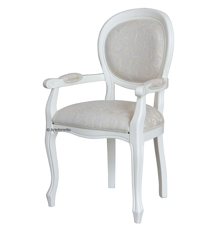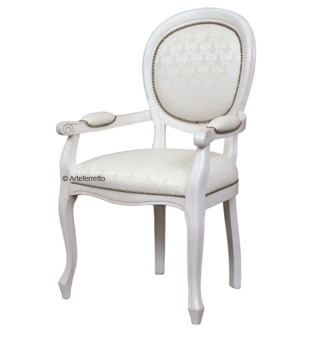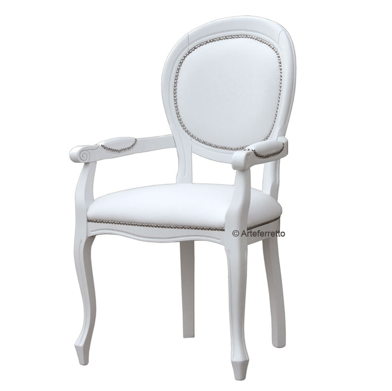 Schöner Stuhl mit Armlehnen weiß (verfügbar aber in vielen anderen Farben), in Louis Philippe Stil.