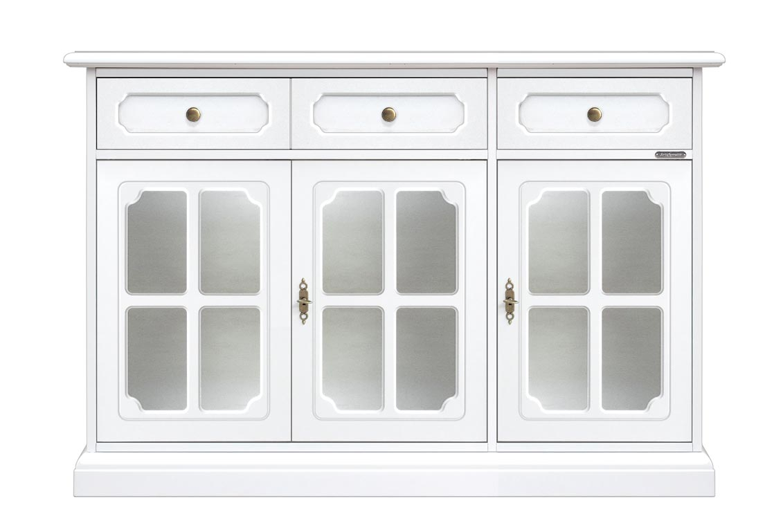 Schöne und elegante Anrichte mit Blattgold für eine elegante Wohnung.Die Lackierung ist durch Details in Blattgold verschönt, die den Schnitzarbeit gut darstellen.Eine große Besonderheit des Möbels ist Ihr Fassungsvermögen.Große Fächer stehen mit einem beweglichen Einlegeboden in den Türen. Die Anrichte hat einen zentralen Schublade.Klassisches Design und Stil für ein Möbel, das nie den Einfluss der Mode befolgt.Bei der Lieferung ist das Möbel schon montiert. Anrichte mit Blattgold ideal für Wohnzimmer.Maße:- Gesamt: B177 x T57,8 x H91,3 cm- Innenschubkasten cm B47 x T42 x H11,4 (Außen-Breite cm 49,7)- Seitliche Türen cm B49,3 x H60,2- Zentrale Tür cm B49,7 x H44,5