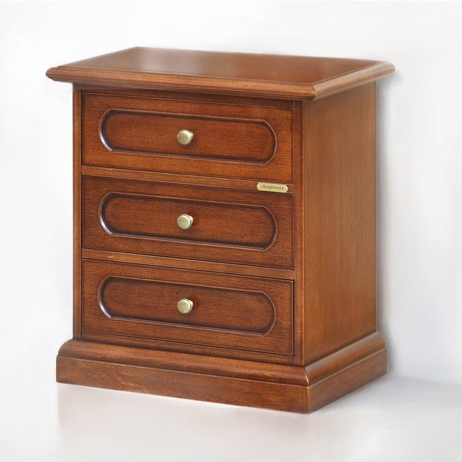 Erstklassiger Nachttisch 3 Schubkästen, ideal für jede Wohnung: Wohnzimmer, Schlafzimmer, usw. Der Nachttisch hat 3 Schubkästen, die sehr geräumig sind. Deshalb sind die Besonderheiten dieses Möbels die Zweckmäßigkeit und die elegante Linie zusammen. Bei der Lieferung ist das Möbel montiert.