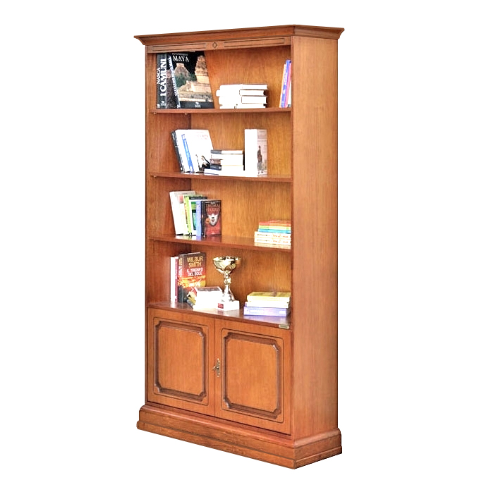Der Bücherschrank hat vier geräumige Fächer im Oberteil durch drei höhenverstellbare Einlegeböden. Im Unterteil hat der Bücherschrank 2 Türen, die ein einziges Fach mit einem beweglichen Einlegeboden machen.. Die Einlegeböden sind sehr stark, um große Gewichte ohne Faltung zu vertragen. Dieses Möbel hat also eine elegante klassische Linie und den italienischen Stil, die mit der Zweckmäßigkeit zusammengestellt werden.