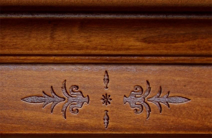 Die Struktur ist sehr stark und gut bearbeitet. Der Sockel und die Platte sind aus Massiv Toulipier, die andere Teilen sind aus MDF Paneel, die durch Tanganjika Nussbaum und Buchenholz plattiert werden.