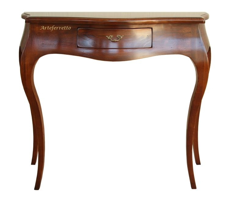 Konsolentisch im Stil mit eleganten Linee und starke Holzstruktur. Konsoltisch aus Holz sehr schön dank den Schlangenlinie und die Fassade des Schubfaches.