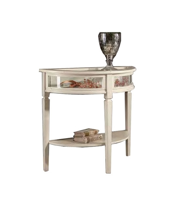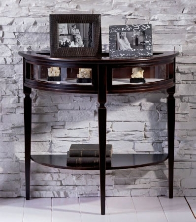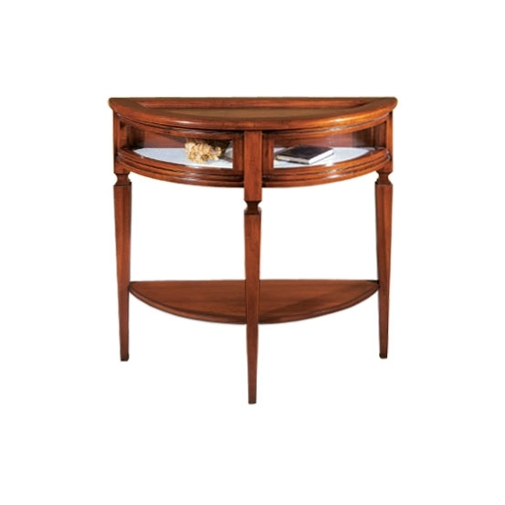 Klassischer Konsolentisch Halbmond aus Massivholz und Glas.