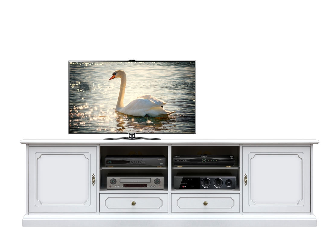 TV-Möbel mit Schubkästen mit Breite 2 m, gleichzeitig groß, praktisch aber elegant und fein.