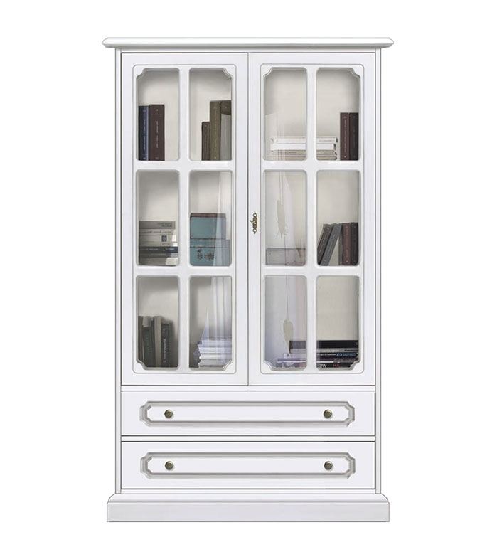 Funktionelles Möbel im klassischen Stil. Die Vitrine hat 2 Glastüren und Gitter und 2 Schubkästen. Die Schubkästen sind sehr geräumig und die allen Einlegeböden sind regulierbar in Hohe.