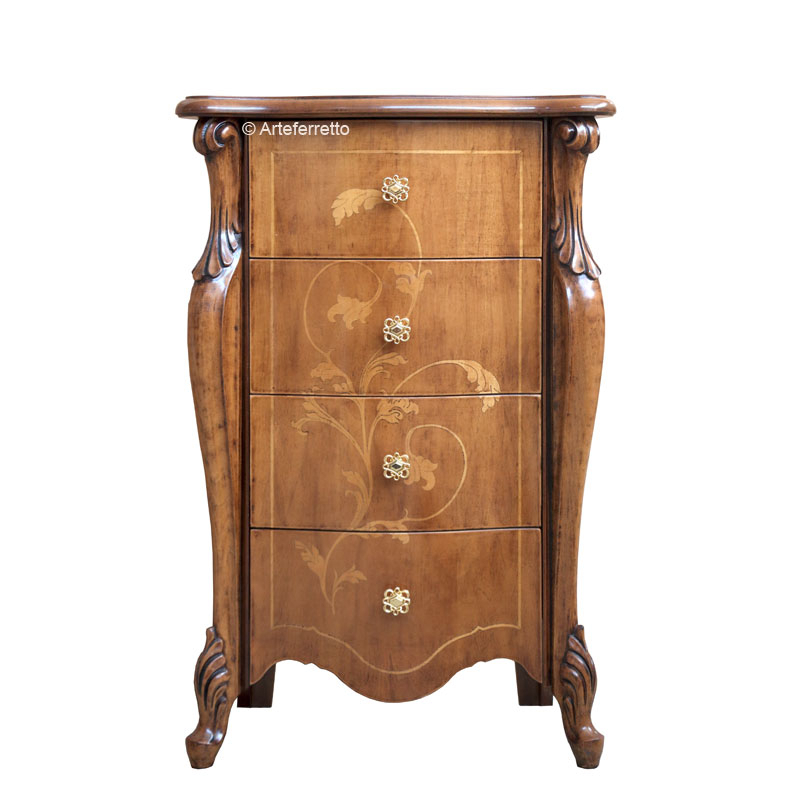 Möbel aus Holz verarbeitet von Handwerkern, die Ihnen diese Kommode im italienischen Stil anbieten.