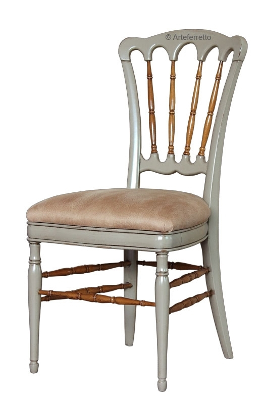 Stuhl Landhausstil aus Holz in zwei Farben: klassische Farbe für gedrechselte Beine und Details und lackierte Farbe für Struktur.