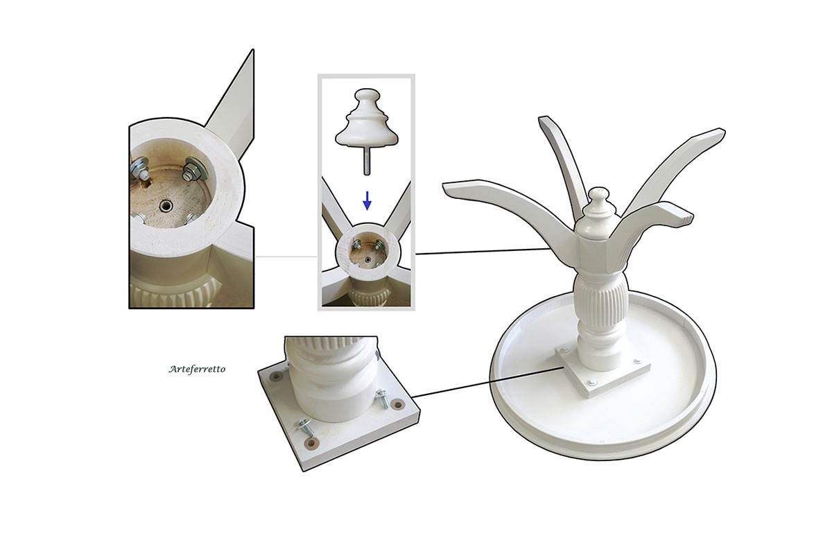 Starke Holzstruktur verarbeitet von spezialisierten Handwerkern, die die zentrale Beine von schönen Schnitzarbeiten verschönert haben.
