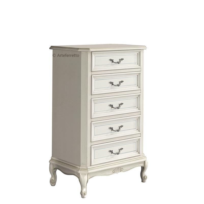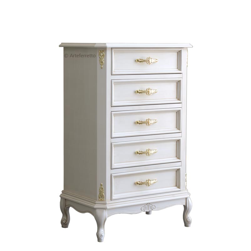Das ist eine Kommode schmal aber praktisch und geräumig, weil ihre 7 Schubladen breit sind.