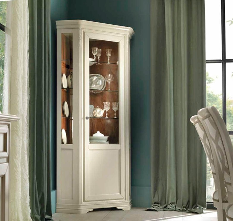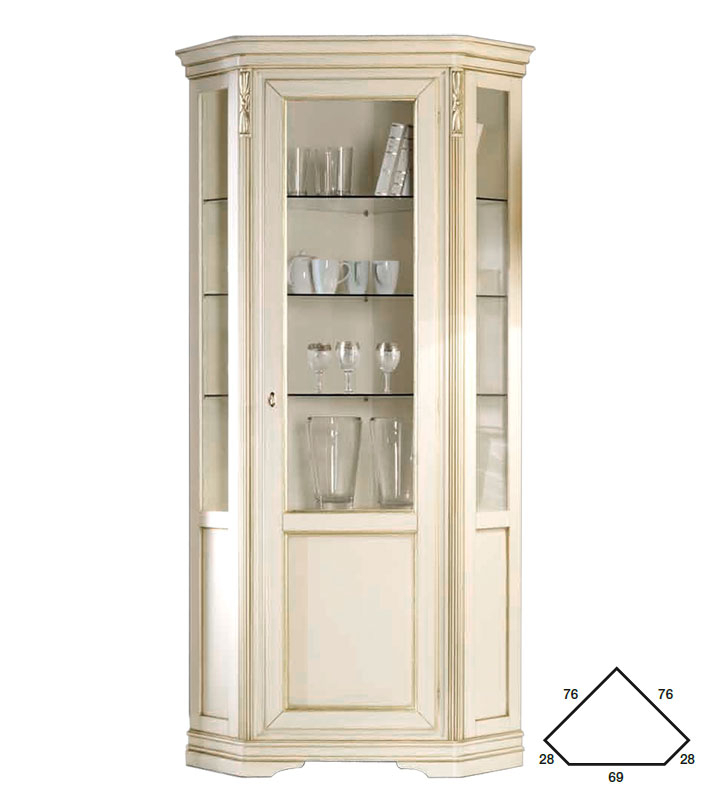 Eckvitrine klassisch 215 cm ideal für die elegante Wohnzimmereinrichtung.
