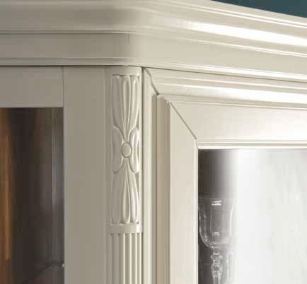 Haltbare Holzstruktur geschnitzt und Glastür geben Stil dem Möbel aus Holz.