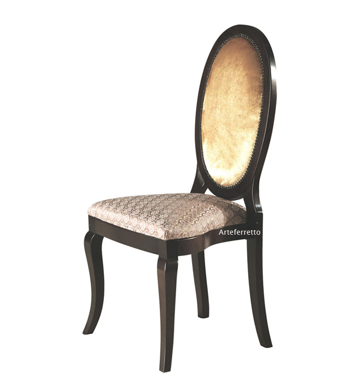 Breiter und bequemer Sitz mit weicher Polsterung und hoche Rücklehne oval: diese Merkmale machen einzigartig die Stühle aus Holz.