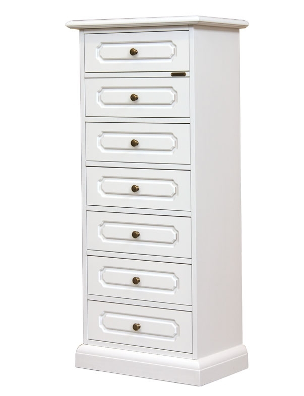 Das ist eine Kommode schmal aber praktisch und geräumig, weil ihre 7 Schubladen breit sind.