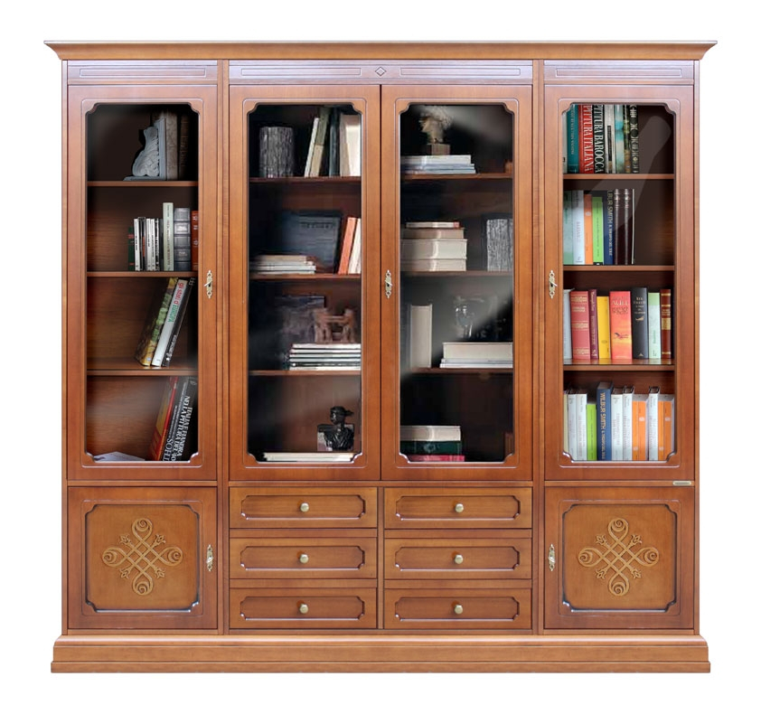 Die Glastüren geben Licht der Struktur, die Schubkasten sind funktional und die Friese verschönen das Möbel im Stil.