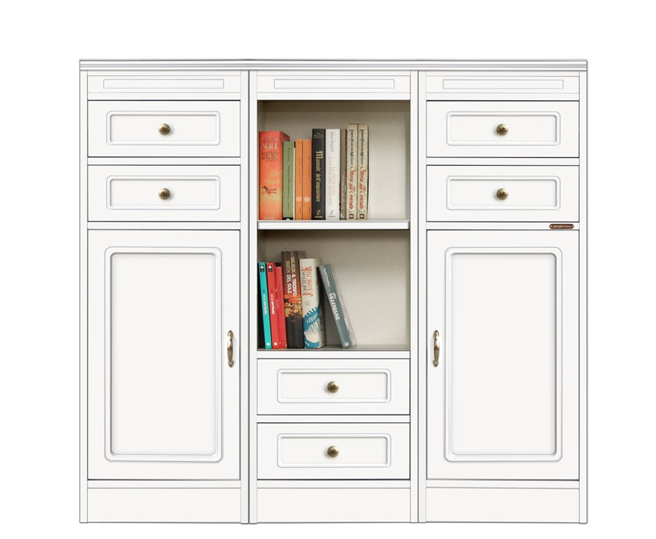 Das Möbel ist sehr geräumig: es hat 6 Schubladen, 2 Schranktüren mit höhenverstellbaren Einlegeböden und 1 Fach, mit höhenverstellbaren Einlegeböden auch.