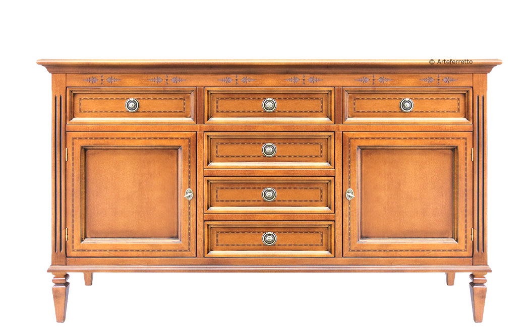 Anrichte mit Intarsie in den Türen-, Schubfächer- und Oberteil- Fassade.