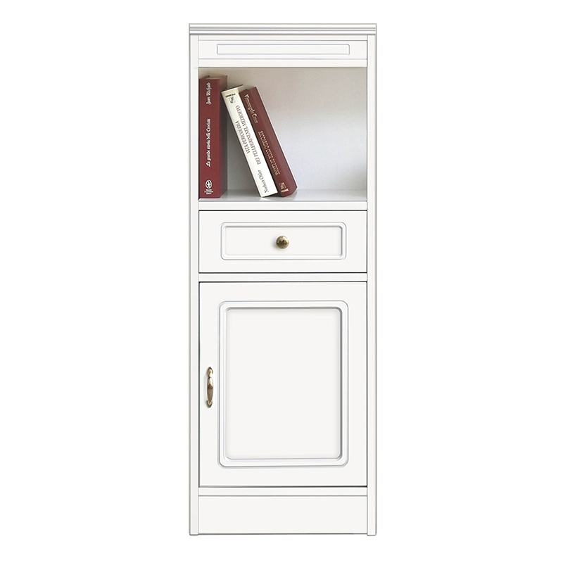 Anrichte mit Fach als Bücherregal ist eine Anrichte-Teil sehr schön und proportioniert. Sie hat 1 Tür und 1 Schubfach und in der Unterteil gibt es ein praktisches Fach offen mit Höhe 28,7 cm.