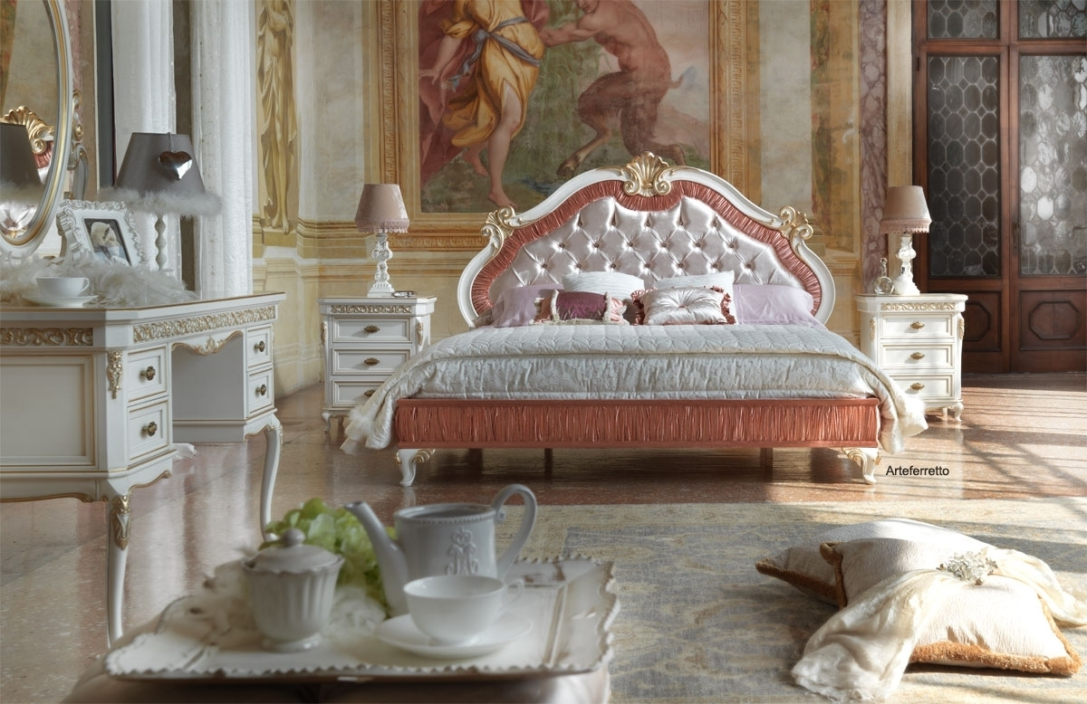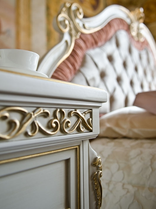 Vier geschmückte Beine haben Goldblatt Details und geben eine feine Note des Bettes.
