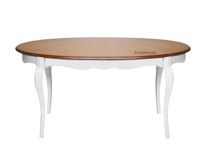 Tisch oval ausziehbar zweifarbig mit Tischplatte aus Kirschholz patiniert und lackierte Struktur ideal für Haus im modernen Stil.