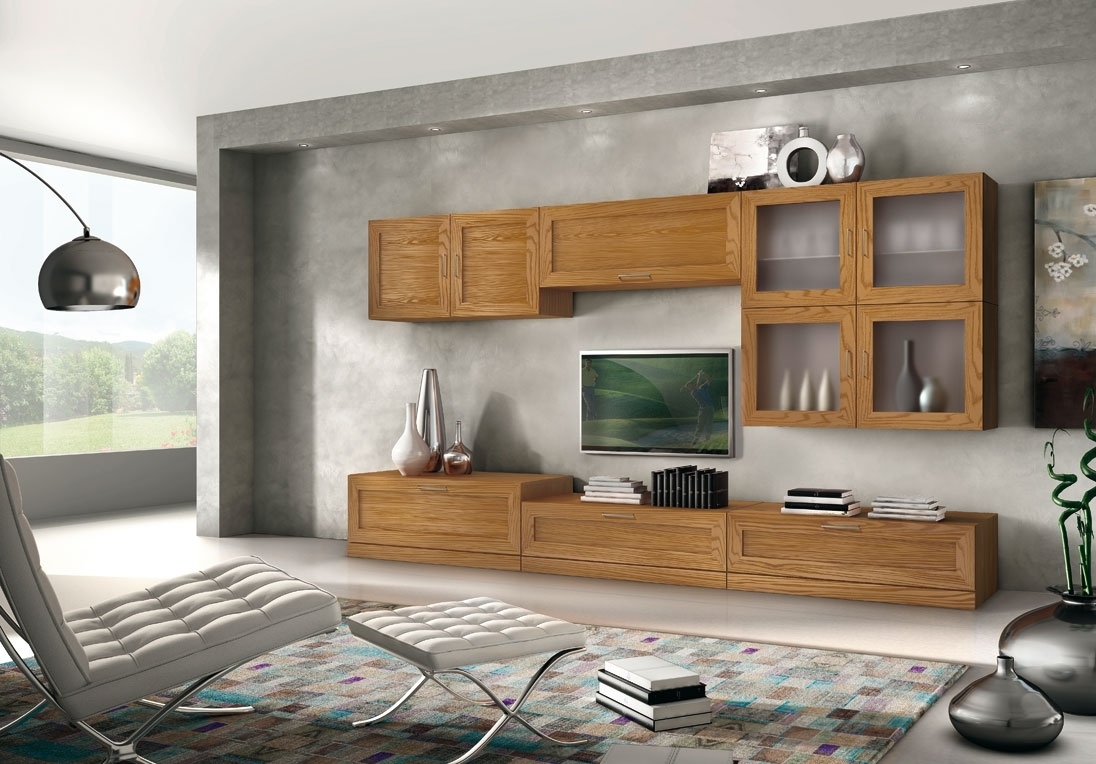 TV-Wohnwand aus Eschenholz in Stil modern, um Wohnzimmer zu einrichten.