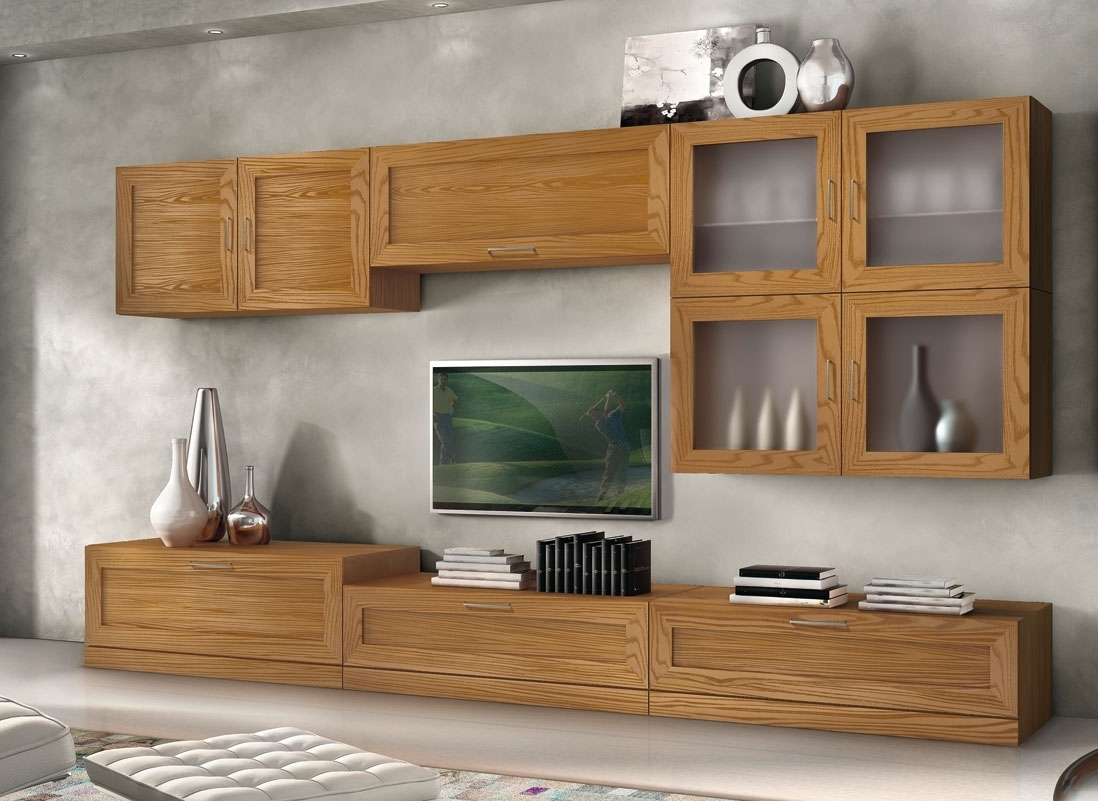 TV-Wohnwand aus Eschenholz mit Hängevitrine