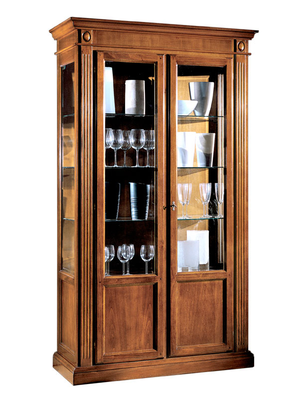 Sie können die Vitrine 2 Türen in klassischen Farbe (Kirschholz patiniert oder Nussbaum patiniert) oder in lackierten Version (Weiß, Elfenbein oder Schwarz), besser in patinierten Version.