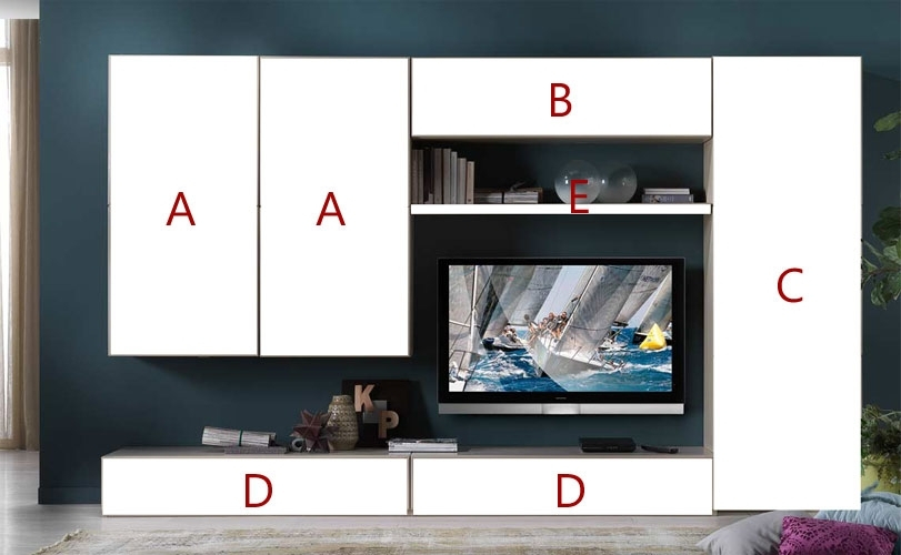 Zwischen der Schranktüren hat es 2 Fächer für die Fernseher-Ausrüstung, z.B. CD Leser, Decoder, Home Theater, etc.