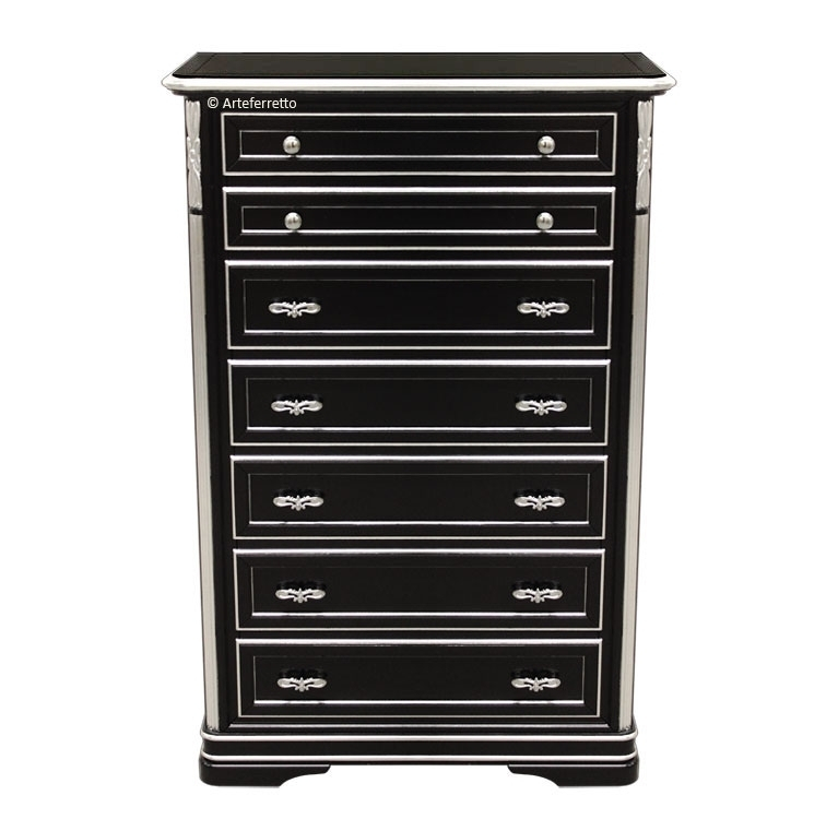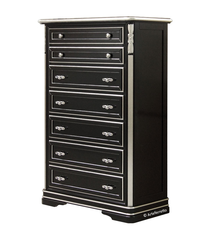 Kommode 7 Schubkästen im klassischen Stil.Schöne Kommode ideal für jede Wohnungsräume, sehr elegant und praktisch. Diese Kommode ist ideal z.B. für Schlafzimmer oder Flur. Dieses Möbel hat 7 Schubkästen, die sehr geräumig sind.Die Besonderheiten dieser Kommode sind also die elegante Linie, die Zweckmäßigkeit zusammen.Das Möbel ist eng aber die Struktur ist stark.Bei der Lieferung ist das Möbel montiert.Maße:Breite 53 cm;Tiefe 34 cm;Höhe 119 cm.Innen-Schubkästen:Breite 38,9 cm;Tiefe 26,3 cm;Höhe 11,3 cm.