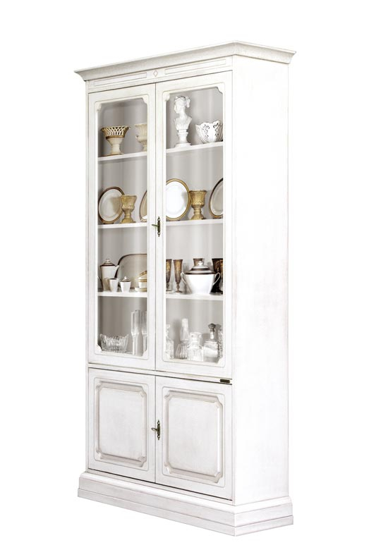 Lackierte Regalwand für ein schönes Zuhause oder ein erstklassiges Büro: sehr schöne Vitrine und praktischer Bücherschrank gleichzeitig. Die Regalwand ist perfekt für jeden Raum (z.B. Wohnzimmer, Schlafzimmer, Büro, usw.). Das Möbel hat 2 Glastüren mit geräumigen Fächern im Oberteil und mit regulierbaren Einlegeböden in Hohe. Im Unterteil hat der Bücherschrank zwei Schranktüren. Die Einlegeböden sind sehr stark, um große Gewichte ohne Faltung zu vertragen. Dieses Möbel hat also eine elegante klassische Linie und den italienischen Stil. Bei der Lieferung ist die lackierte Regalwand montiert.