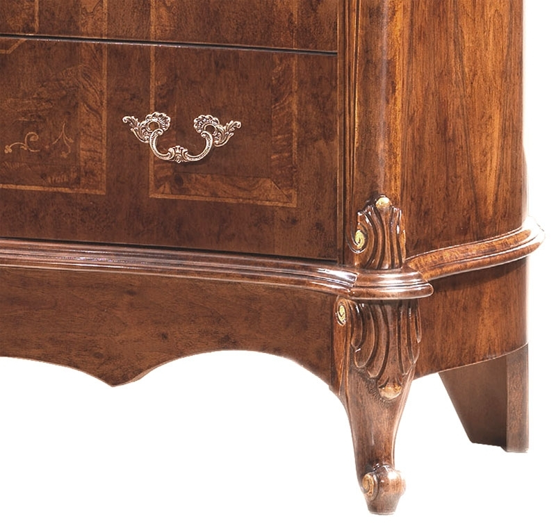 Das Möbel hat 3 geräumige Schubladen mit Intarsie, wo der schöne Beschlag gut passt.