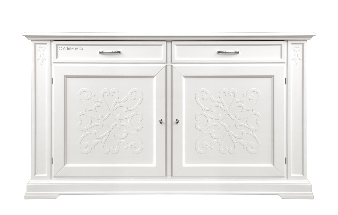 Die klassische Gestaltung verbindet sich mit Ornamentverzierungen von großer Eleganz, ohne die Funktionalität eines geräumigen Möbelstücks zu übergehen.