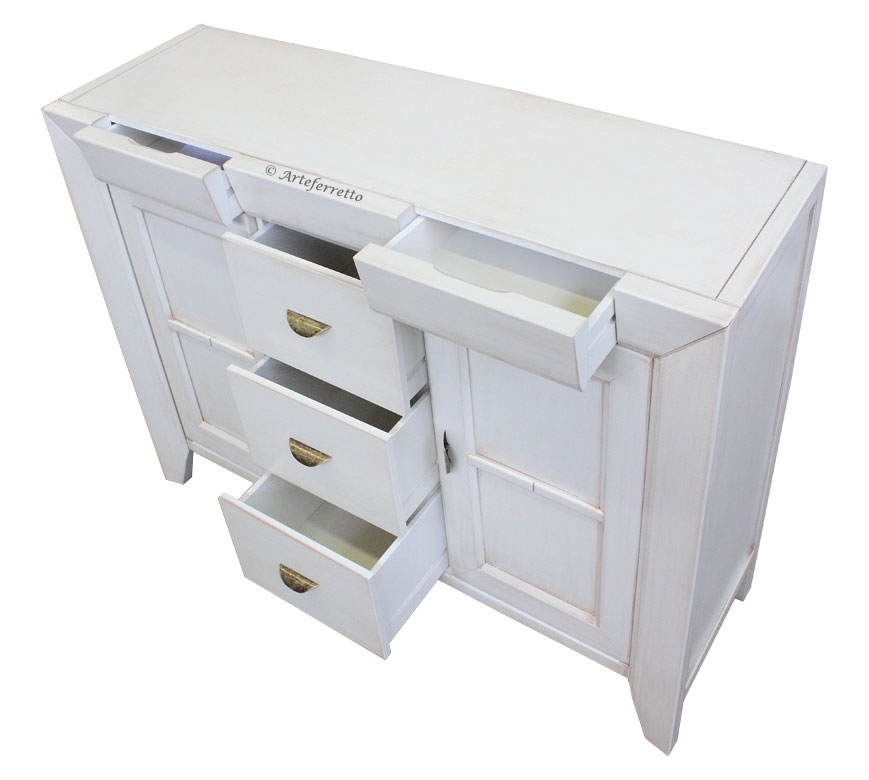 Schöne und elegante Anrichte mit Blattgold für eine elegante Wohnung.Die Lackierung ist durch Details in Blattgold verschönt, die den Schnitzarbeit gut darstellen.Eine große Besonderheit des Möbels ist Ihr Fassungsvermögen.Große Fächer stehen mit einem beweglichen Einlegeboden in den Türen. Die Anrichte hat einen zentralen Schublade.Klassisches Design und Stil für ein Möbel, das nie den Einfluss der Mode befolgt.Bei der Lieferung ist das Möbel schon montiert. Anrichte mit Blattgold ideal für Wohnzimmer.Maße:- Gesamt: B177 x T57,8 x H91,3 cm- Innenschubkasten cm B47 x T42 x H11,4 (Außen-Breite cm 49,7)- Seitliche Türen cm B49,3 x H60,2- Zentrale Tür cm B49,7 x H44,5