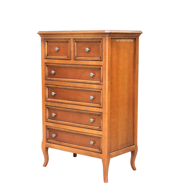 Kommode 7 Schubkästen im klassischen Stil.Schöne Kommode ideal für jede Wohnungsräume, sehr elegant und praktisch. Diese Kommode ist ideal z.B. für Schlafzimmer oder Flur. Dieses Möbel hat 7 Schubkästen, die sehr geräumig sind.Die Besonderheiten dieser Kommode sind also die elegante Linie, die Zweckmäßigkeit zusammen.Das Möbel ist eng aber die Struktur ist stark.Bei der Lieferung ist das Möbel montiert.Maße:Breite 53 cm;Tiefe 34 cm;Höhe 119 cm.Innen-Schubkästen:Breite 38,9 cm;Tiefe 26,3 cm;Höhe 11,3 cm.