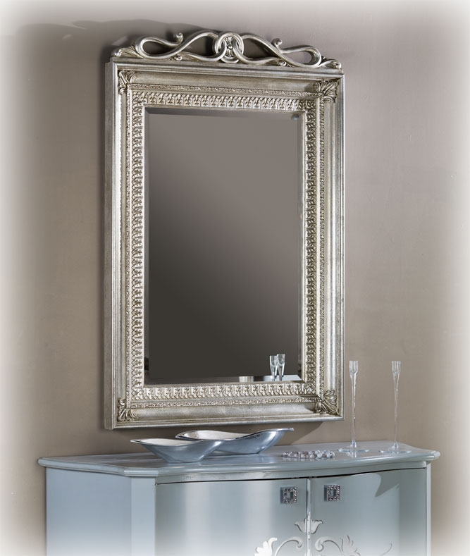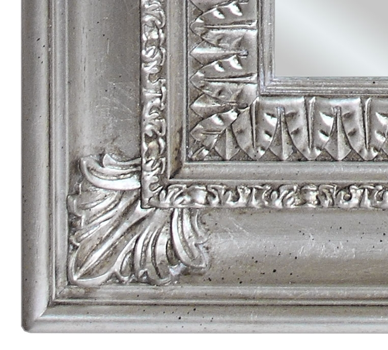 Sehr schöner Spiegel Blatt handgemacht, er kann in vielen Wohnungen gestellt sein und wird die Hauptfigur absolut mit seinem klassichen Stil sein. Der Rahmen ist aus Massivholz und hat eine schöne Schnitzarbeit, im Oberteil und entlang den Rahmen. Die Verzierung im Oberteil ist sehr schön, originell und einzig. Das Blattgold oder Blattsilber sind handgemacht und haben eine gedachte Patinierung, auch handgemacht. Ein erstklassiger Spiegel in Blattgold oder Blattsilber, der Wert und Schönheit der Wohnung gibt. Der Spiegel ist bei der Lieferung schon montiert, Sie bekommen die Schrauben für die Befestigung auf Wand. Er ist perfekt für Wohnzimmer oder Flur mit einer Anrichte, einem Konsolentisch, usw., aber auch für Schlafzimmer oder Badezimmer.