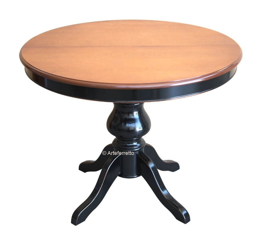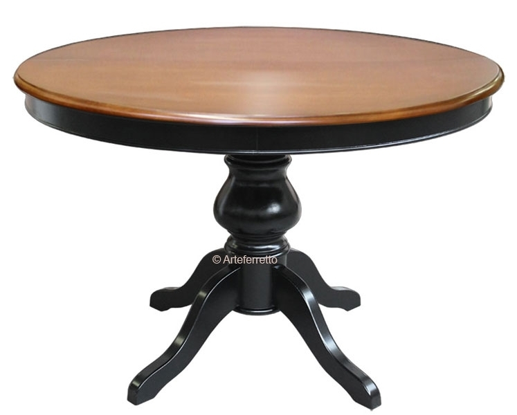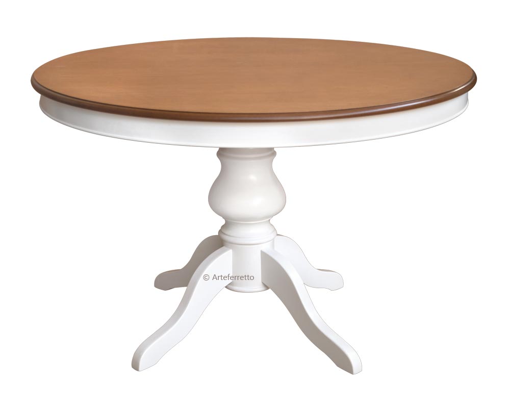 Tisch rund 120 cm zweifarbig und ausziehbar durch eine Zusatzplatte im Zentrum von 38 cm.